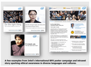 As the Communications Manager for Intel’s Business Practice Excellence (BPX) program, I developed and executed a comprehensive communication strategy to reinforce the company’s commitment to uncompromising integrity and professionalism. This included creating engaging content for a refreshed Ethics at Intel Intranet site, launching a monthly newsletter featuring timely articles on ethics issues, and coordinating an internal awareness campaign with diverse posters, translated into multiple international languages, I supported and helped generate employee buy in as well as improving employee morale. Due to increased awareness about international ethics and its importance, 97% of the international employee population took the course.