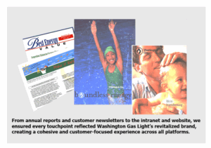 Tasked with modernizing Washington Gas Light's brand, I spearheaded a communications strategy designed to transition the company from a traditional utility to a forward-thinking partner for the community. Launching with the Annual Report as the first product, we incorporated new design guidelines emphasizing trust and customer commitment. This new brand became the foundation for a holistic transition, applied across newsletters, the intranet, and all customer communication notices.